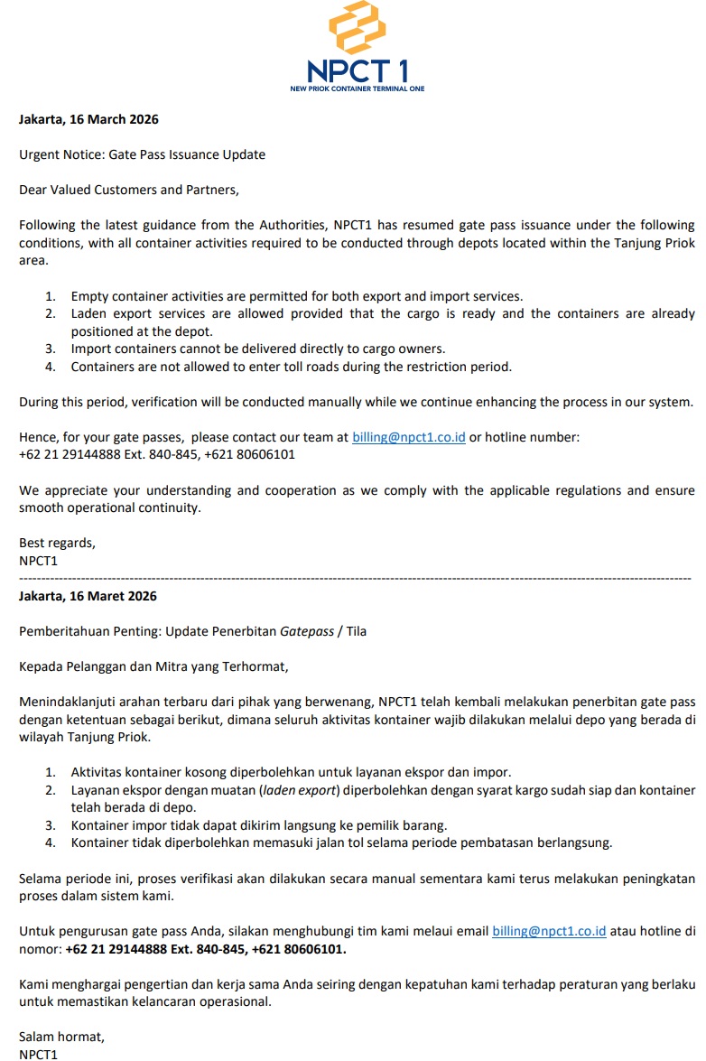 Customer Announcement - Gatepass Issuance Update - 16 March 2026