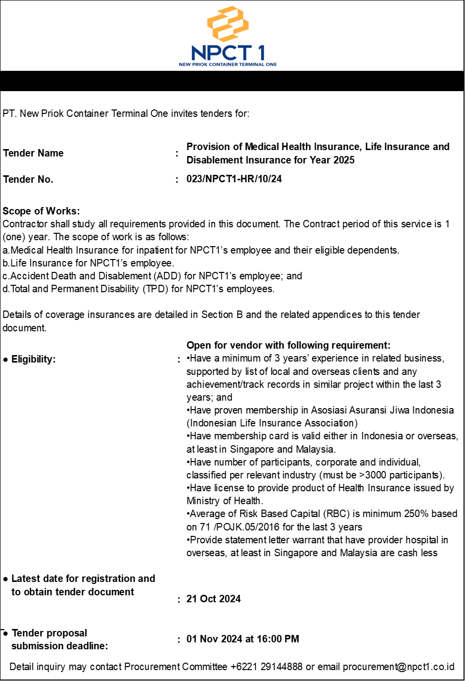 Provision of Medical Health Insurance, Life Insurance and Disablement Insurance for Year 2025
